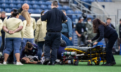 DeMelo fell to the turf near halftime of Sunday’s Reign match against Racing Louisville and was transported from the field via ambulance. It was eerily similar to an incident earlier this year involving Savy King. That match was not stopped but the league said shortly after that it should have been, and would be in the future.