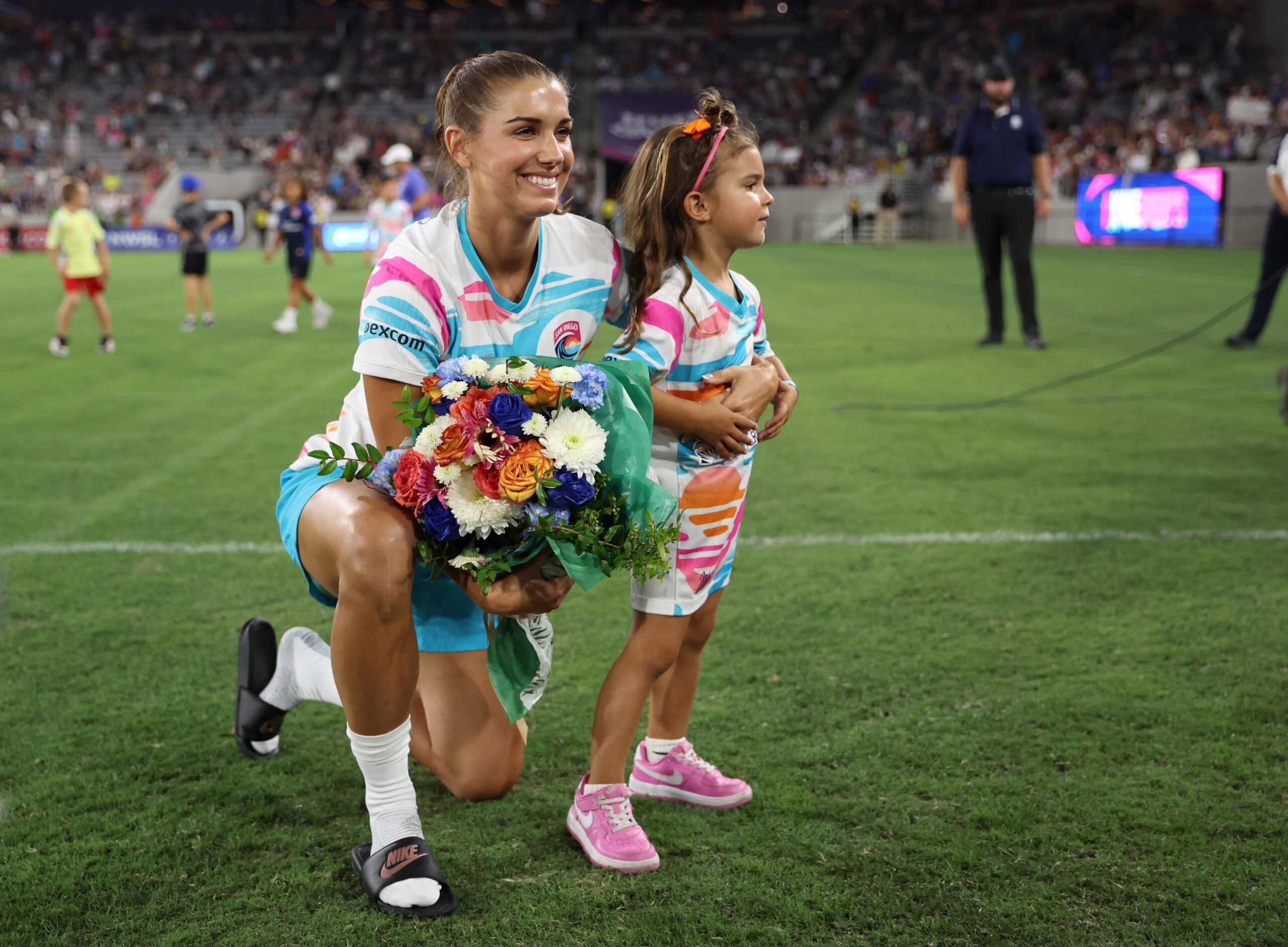“One really special moment is when we had five moms on the team at once between myself, Casey [Krueger], Julie [Ertz], Crystal [Dunn] and AD [Franch],” Morgan recalled during her retirement press conference last fall. “That was a really special moment to be able to enjoy with some of my teammates knowing how far we’ve come and the support that we now get as moms and still as professional athletes.”